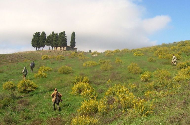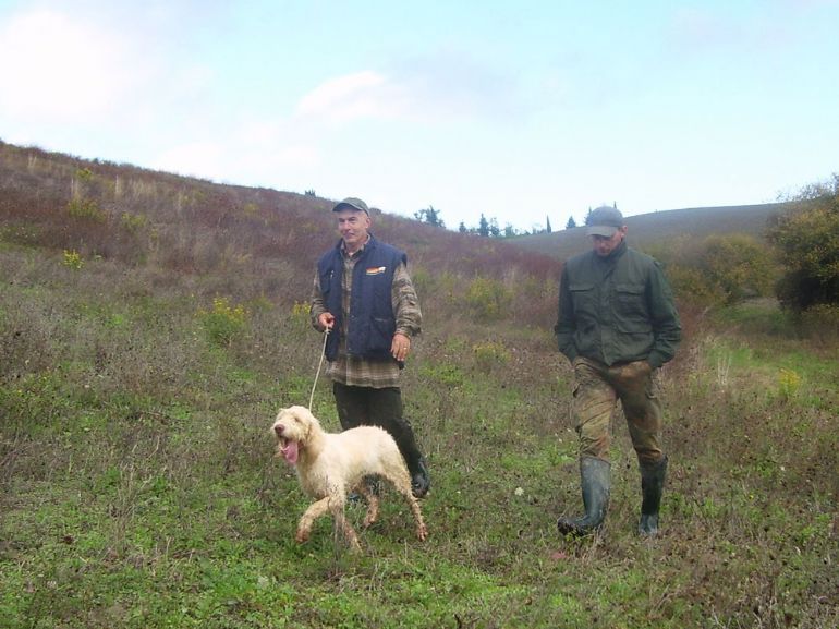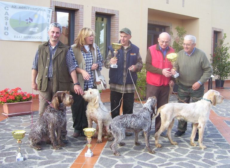 Questa domenica ci dedichiamo alla prova a squadre su selvatico abbattuto che si è svolta a Lajatico. Ieri si è svolta la Sant'Uberto ed Enrico Naldi è stato assai soddisfatto del lavoro di Orazio che ha portato tanti punti alla squadra toscana. Oggi le condizioni sono molto complesse, nella notte c'è stato un nubifragio e la campagna è fradicia; siamo preoccupati per il compito olfattivo dei nostri spinoni e per la selvaggina che, speriamo, voli bene. La nostra selezione toscana è composta da Gitana di Morghengo e Agata condotte da Marco Nelli, Biro del Brenton condotto da Leonardo Antonielli ed Ario delle Acque Alte condotto dal sottoscritto.