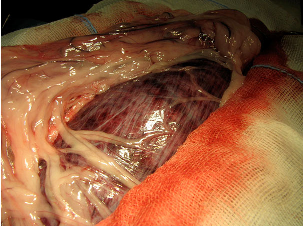 2. Dei 166 soggetti che furono operati, 4,8% furono eutanasizzati durante la chirurgia, e l’11,4% morì durante il ricovero ( 2 dei cani morirono durante la chirurgia). Tutti i cani che fuono dimessi erano ancora vivi al momento della rimozione della sutura chirugica.